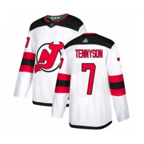>Youth New Jersey Devils #7 Matt Tennyson Authentic White Away Hockey Jersey