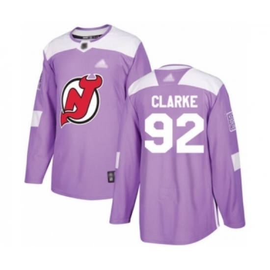 >Youth New Jersey Devils #92 Graeme Clarke Authentic Purple Fights Cancer Practice Hockey Jersey