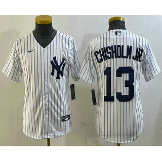 >Youth New York Yankees #13 Jazz Chisholm Jr White Cool Base Stitched Jersey