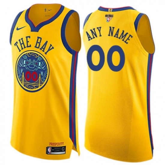 Men's Nike Golden State Warriors Customized Authentic Gold 2018 NBA Finals Bound NBA Jersey - City Edition