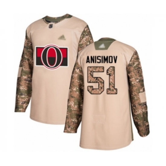 >Youth Ottawa Senators #51 Artem Anisimov Authentic Camo Veterans Day Practice Hockey Jersey