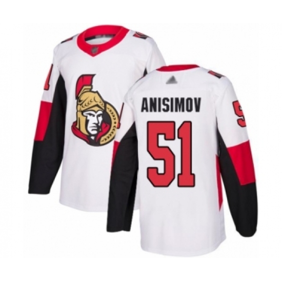 >Youth Ottawa Senators #51 Artem Anisimov Authentic White Away Hockey Jersey