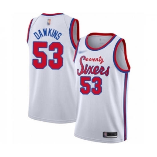 Men's Philadelphia 76ers #53 Darryl Dawkins Authentic White Hardwood Classics Basketball Jersey