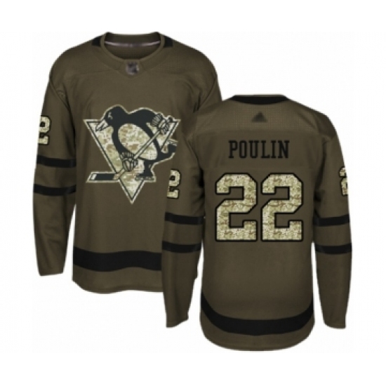 >Youth Pittsburgh Penguins #22 Samuel Poulin Authentic Green Salute to Service Hockey Jersey