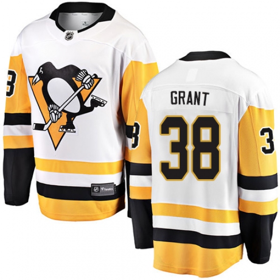 >Youth Pittsburgh Penguins #38 Derek Grant Authentic White Away Fanatics Branded Breakaway NHL Jersey