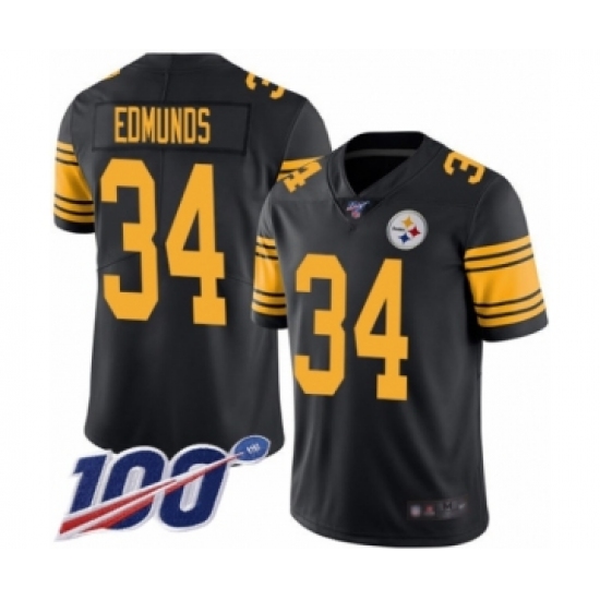 Men's Pittsburgh Steelers #34 Terrell Edmunds Limited Black Rush Vapor Untouchable 100th Season Football Jersey