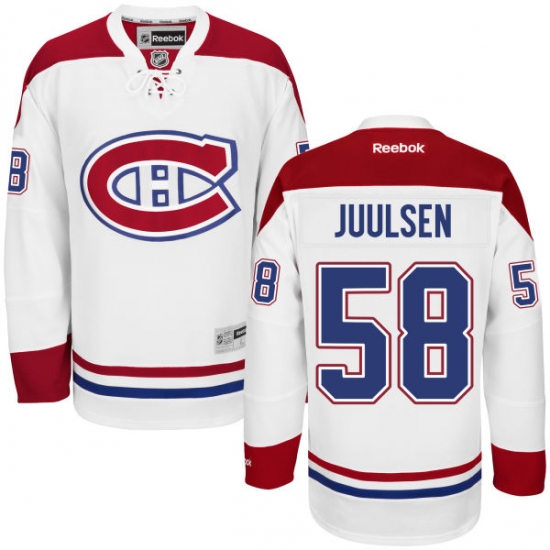 Home>NHL>Montreal Canadiens>Noah Juulsen>Youth Reebok Montreal Canadiens #58 Noah Juulsen Authentic White Away NHL Jersey