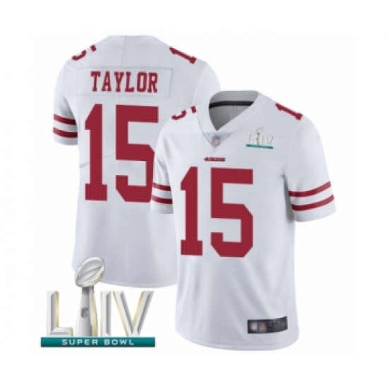 >Youth San Francisco 49ers #15 Trent Taylor White Vapor Untouchable Limited Player Super Bowl LIV Bound Football Jersey