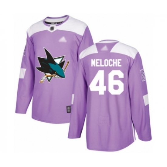 >Youth San Jose Sharks #46 Nicolas Meloche Authentic Purple Fights Cancer Practice Hockey Jersey