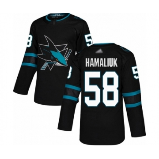 >Youth San Jose Sharks #58 Dillon Hamaliuk Authentic Black Alternate Hockey Jersey