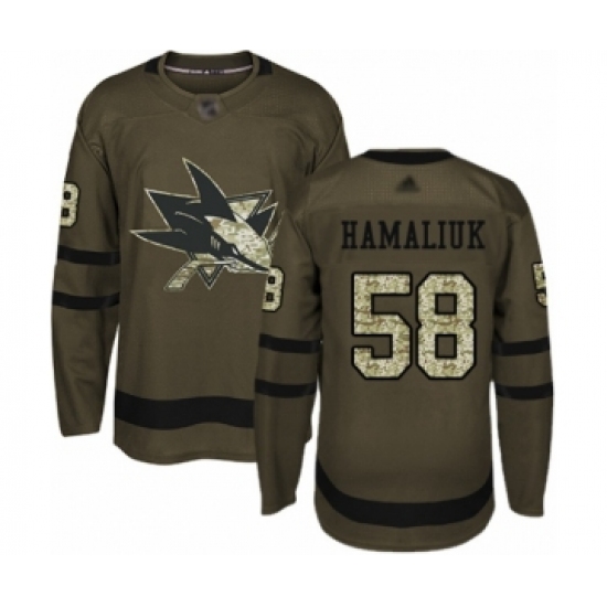 >Youth San Jose Sharks #58 Dillon Hamaliuk Authentic Green Salute to Service Hockey Jersey
