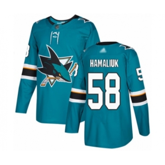 Men's San Jose Sharks #58 Dillon Hamaliuk Authentic Teal Green Home Hockey Jersey
