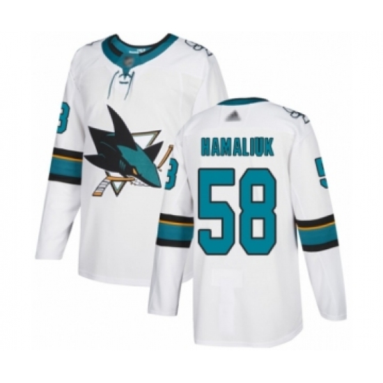 >Youth San Jose Sharks #58 Dillon Hamaliuk Authentic White Away Hockey Jersey