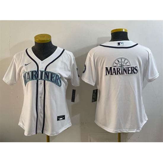 Youth Seattle Mariners Team Big Logo White Cool Base Stitched Baseball Jersey
