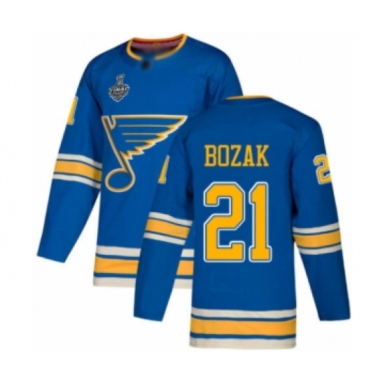 Youth St. Louis Blues #21 Tyler Bozak Authentic Navy Blue Alternate 2019 Stanley Cup Final Bound Hockey Jersey