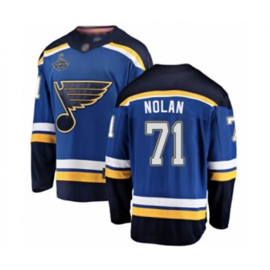 >Youth St. Louis Blues #71 Jordan Nolan Fanatics Branded Royal Blue Home Breakaway 2019 Stanley Cup Champions Hockey Jersey