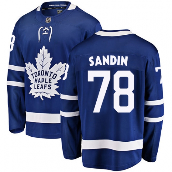 >Youth Toronto Maple Leafs #78 Rasmus Sandin Authentic Royal Blue Home Fanatics Branded Breakaway NHL Jersey