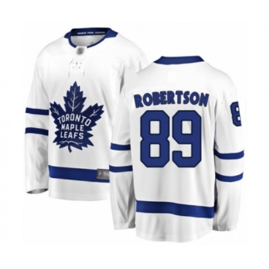 >Youth Toronto Maple Leafs #89 Nicholas Robertson Authentic White Away Fanatics Branded Breakaway Hockey Jersey