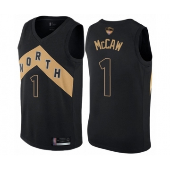 >Youth Toronto Raptors #1 Patrick McCaw Swingman Black 2019 Basketball Finals Bound Jersey - City Edition