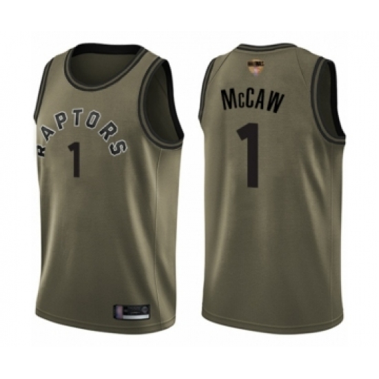 >Youth Toronto Raptors #1 Patrick McCaw Swingman Green Salute to Service 2019 Basketball Finals Bound Jersey