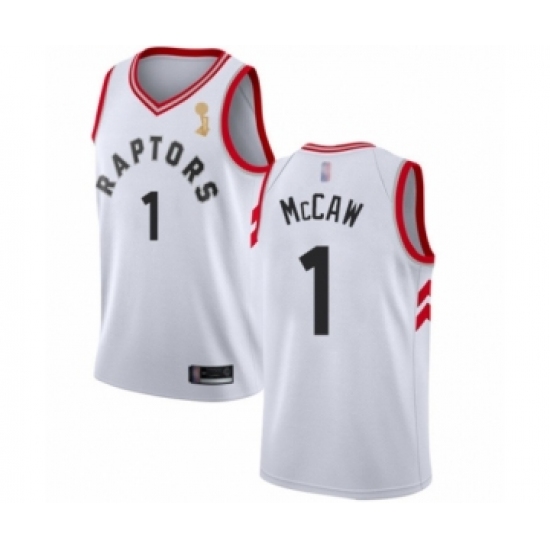 >Youth Toronto Raptors #1 Patrick McCaw Swingman White 2019 Basketball Finals Champions Jersey - Association Edition