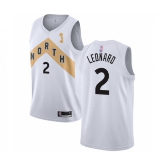>Youth Toronto Raptors #2 Kawhi Leonard Swingman White 2019 Basketball Finals Champions Jersey - City Edition