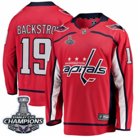 >Youth Washington Capitals #19 Nicklas Backstrom Fanatics Branded Red Home Breakaway 2018 Stanley Cup Final Champions NHL Jersey