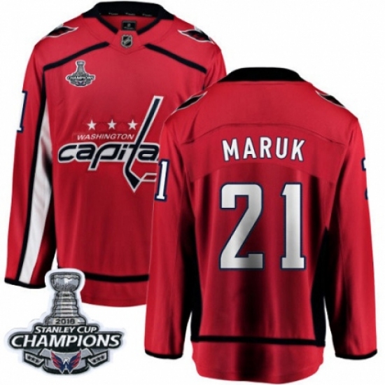 >Youth Washington Capitals #21 Dennis Maruk Fanatics Branded Red Home Breakaway 2018 Stanley Cup Final Champions NHL Jersey