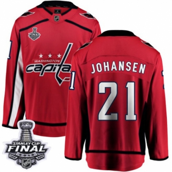 >Youth Washington Capitals #21 Lucas Johansen Fanatics Branded Red Home Breakaway 2018 Stanley Cup Final NHL Jersey
