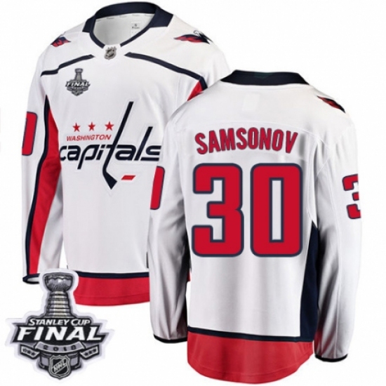 Youth Washington Capitals #30 Ilya Samsonov Fanatics Branded White Away Breakaway 2018 Stanley Cup Final NHL Jersey