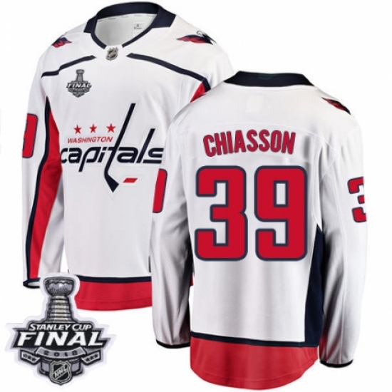 Youth Washington Capitals #39 Alex Chiasson Fanatics Branded White Away Breakaway 2018 Stanley Cup Final NHL Jersey