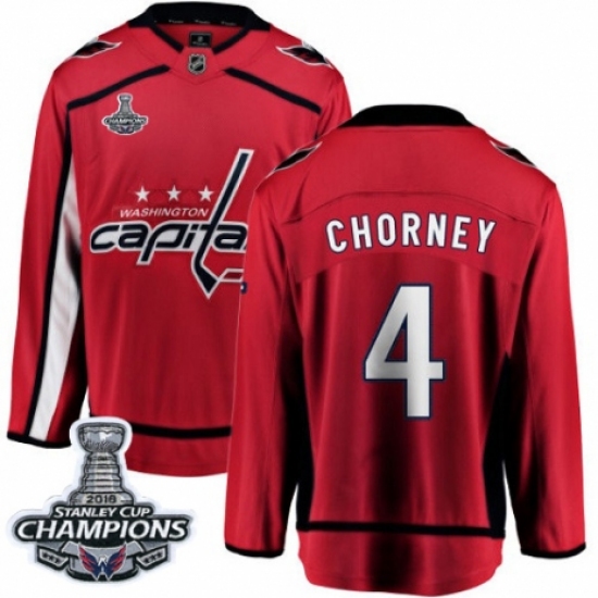 >Youth Washington Capitals #4 Taylor Chorney Fanatics Branded Red Home Breakaway 2018 Stanley Cup Final Champions NHL Jersey