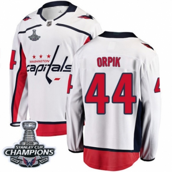 Youth Washington Capitals #44 Brooks Orpik Fanatics Branded White Away Breakaway 2018 Stanley Cup Final Champions NHL Jersey