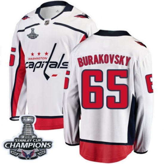 Youth Washington Capitals #65 Andre Burakovsky Fanatics Branded White Away Breakaway 2018 Stanley Cup Final Champions NHL Jersey