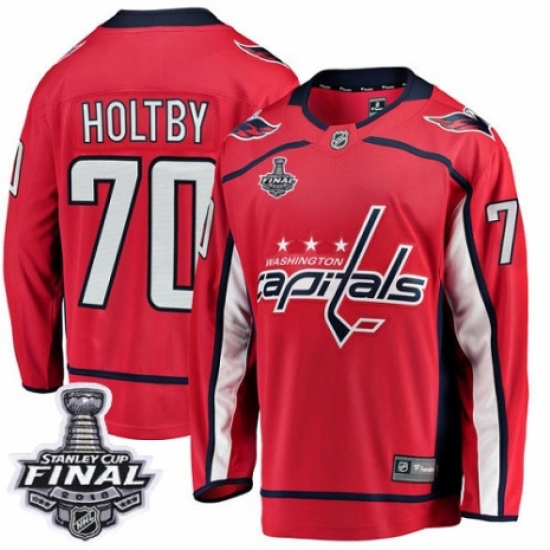 >Youth Washington Capitals #70 Braden Holtby Fanatics Branded Red Home Breakaway 2018 Stanley Cup Final NHL Jersey