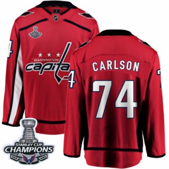 >Youth Washington Capitals #74 John Carlson Fanatics Branded Red Home Breakaway 2018 Stanley Cup Final Champions NHL Jersey
