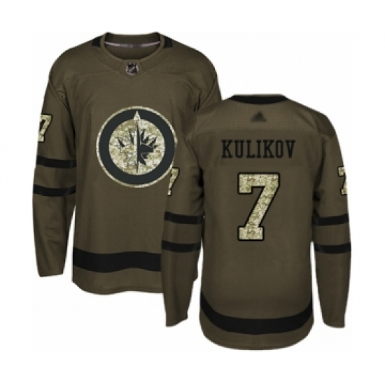 >Youth Winnipeg Jets #7 Dmitry Kulikov Authentic Green Salute to Service Hockey Jersey